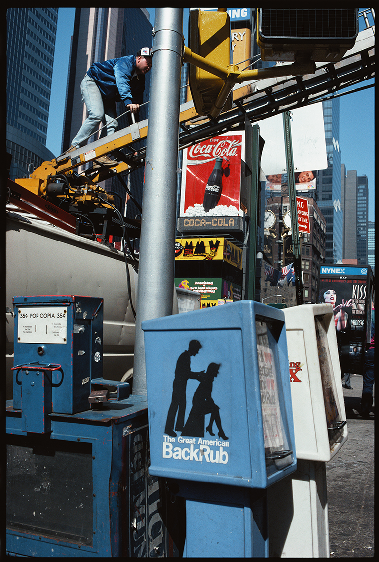 « La couleur, c’est le pouvoir » apparaît comme le slogan qui jalonne le travail photographique engagé que mène Robert Walker sur les métropoles telles que New York, Paris, Rome ou encore Varsovie et Toronto. Convaincu que la publicité veut séduire et soumettre la masse des consommateurs auxquels elle inocule sans cesse de nouveaux besoins, il utilise dans ses images les codes de celle-ci, les récupère et les plie à sa propre vision de l’espace urbain. Peintre de formation, porté vers l’abstraction, il entend se servir des couleurs de Times Square - véritable ground zéro de la société de consommation - pour recomposer textes et images aux accents publicitaires, selon une logique critique et grinçante n’ayant plus rien de commerciale. Robert Walker est né à Montréal où il a étudié la peinture à l’université Sir George Williams. Dans les années 70, il a orienté son travail sur la ville et la photographie. |